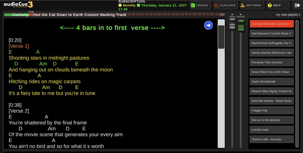 Used by solo musicians and bands across the world, audioCue is the only combined backing tracks player and lyrics prompter you will ever need.